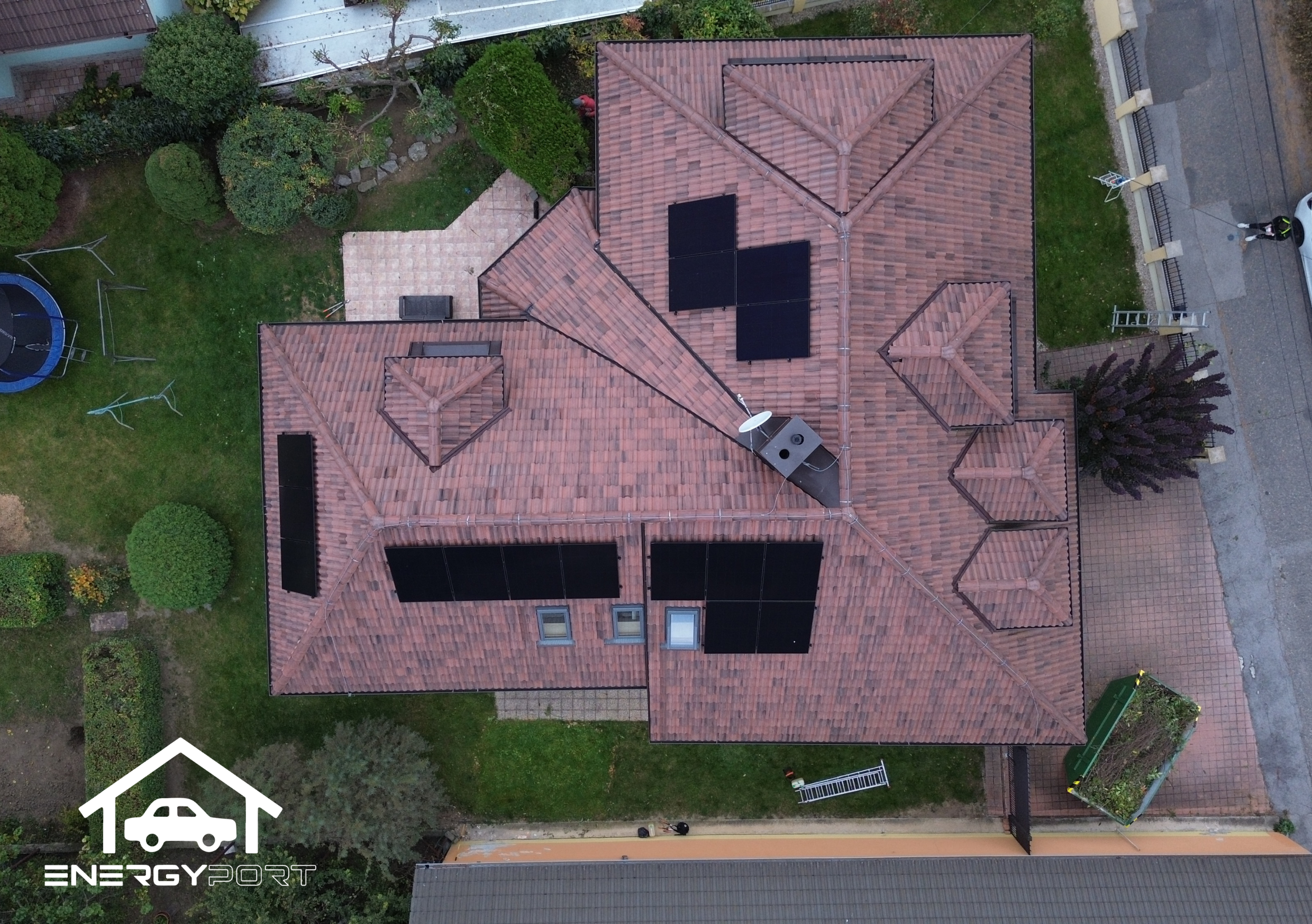 Použité celočierne panely dotvárajú prémiový vzhľad strechy a podčiarkujú technologický charakter celej realizácie.