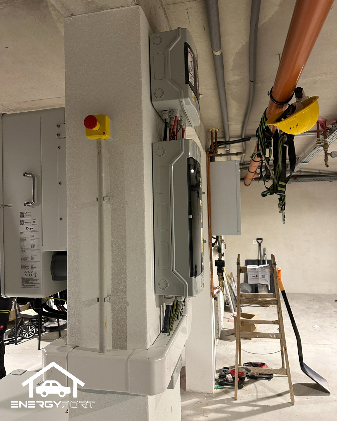 Pre zvýšenie bezpečnosti prevádzky sme zákazníkovi do garáže nainštalovali núdzové STOP tlačidlo, ktoré umožňuje okamžité vypnutie výroby elektrárne v prípade potreby.