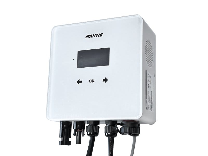 Solárny regulátor MPPT s dvoma AC výstupmi je ideálny na ohrev vody v domácnostiach či chatách. Tento inteligentný systém dokáže prioritizovať ohrev vody pomocou fotovoltiky a automaticky prepínať medzi solárnym a sieťovým zdrojom. Vďaka integrácii s WiFi a aplikáciou ANTIK Smart Home umožňuje pohodlné monitorovanie teploty vody a výkonu systému priamo na diaľku. ANTIK ponúka nastaviteľný výkon 2000 až 3000 W.