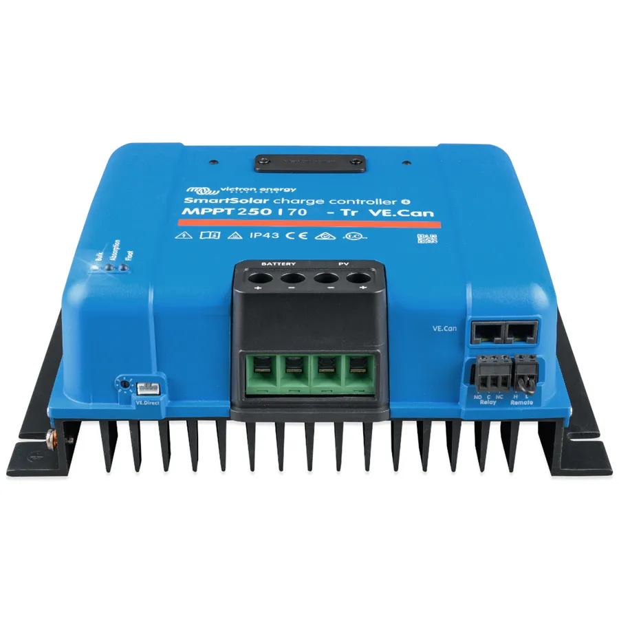 MPPT solárny regulátor Victron Energy SmartSolar 250V 70A-Tr VE.Can je inteligentný regulátor nabíjania s vysokým výkonom pre solárne systémy. Vďaka najnovším technológiám a vysoko kvalitným materiálom ponúka tento regulátor maximálnu efektivitu a spoľahlivosť pre váš solárny systém. S funkciou VE.Can môže byť synchronizovaných 25 jednotiek v jednom FV systéme.