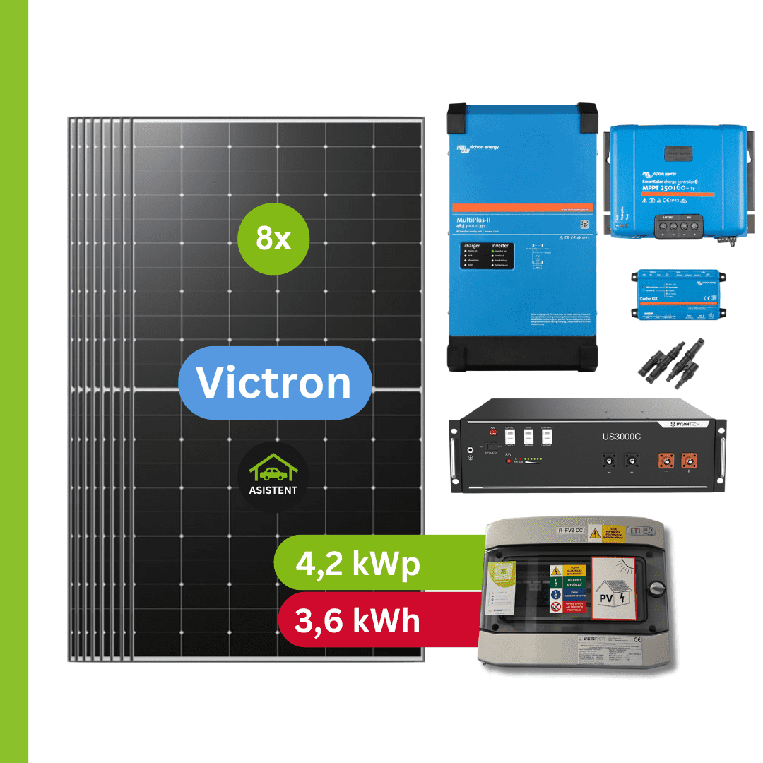 S našou fotovoltickou zostavou Victron 4,2kWp 3,6kWh Off-grid získate spoľahlivý a výkonný systém, ktorý funguje bez verejnej siete a dodáva energiu tam kde nie je.